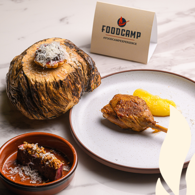 La recette du chef Maxime Lizotte au Foodcamp 2024 : la poitrine de canard marinée à sec, fumée et cuite à basse température, garniture croustillante soufflée.